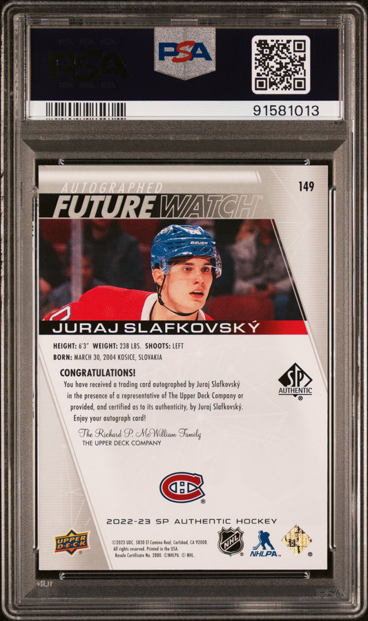 2022 SP Authentic Juraj Slafkovsky #149 Autograph 661/999 PSA 9